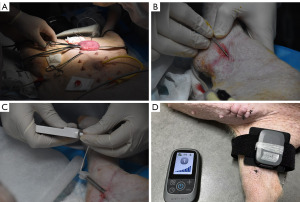 After completing the control group test, the bladder was emptied. The TNS system’s external control unit was placed on the skin over the implantation site, and the stimulator was activated with the corresponding stimulation parameters adjusted.
