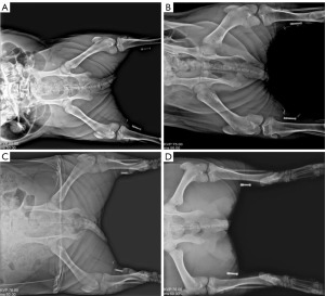 X-ray examinations of the implantation site conducted immediately after implantation, at 1 week, 2 weeks, and before anatomical dissection (Figure 3) revealed no displacement of the implant relative to the reference marker. The implanted device remained in its original position and operated normally throughout the observation period.