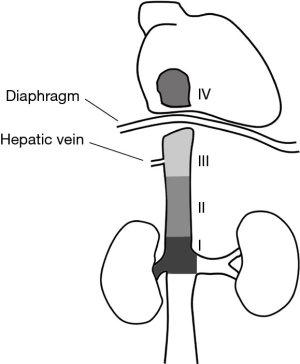The rationale for aggressive surgical management of renal cell carcinoma (RCC) with inferior vena cava (IVC) involvement was first formally described in 1972 by Skinner et al. at Massachusetts General Hospital, at which time the surgical principles for the procedure were established and described (1). Prior to this, IVC thrombectomy was rarely undertaken given the poor prognosis associated with the advanced stage of disease. Decades passed with few changes to the operative technique until the mid-2000s and the burgeoning adoption of robotics in urologic surgery. Pure or hand-assisted laparoscopic radical nephrectomy for level II thrombi was initially described in scattered case reports (2,3), but the cases were limited in number and involved only early level II thrombi extending between 1–3 cm above the renal vein. Starting in 2011, several groups began reporting outcomes of IVC thrombectomy using the robotic approach, and since then thrombus levels and surgical complexity have been increasing (Figure 1).