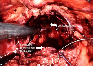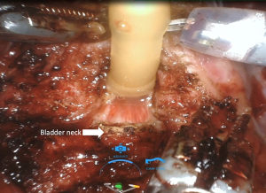Anterior, lateral, and anterolateral approaches have been described for dissection between the bladder and prostate. Many studies have shown that protecting the bladder neck as high as possible, up to 360 degrees if possible, protects the intrinsic sphincteric mechanism and has a positive effect on continence recovery. During dissection between the bladder and prostate, utmost care should be given in order to preserve bladder neck circular fibers (Figure 1) (Video 1, both, Part-1 and 2).