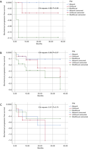 - Sun G, Huang R, Zhang X, et al. The impact of multifocal perineural invasion on biochemical recurrence and timing of adjuvant androgen deprivation therapy in high risk prostate cancer following radical prostatectomy. Prostate 2017;77:1279-87. [Crossref] [PubMed]
