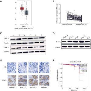 MAL2 was notably upregulated in PRAD tissues and cells