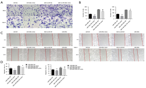 Cell migration abilities and Cell invasion abilities of 786-O, ACHN, and Caki-2 cells were evaluated using wound healing assays and transwell assays according to previous reports. For wound healing assays, Seed cells in 6 well plates overnight and culture until confluent. Using a (blue) pipette tip make a straight scratch, simulating a wound. Finally discard the media from the wells and add fresh medium to wells. For transwell assays. Briefly, a total of 5×104 suspended 786-O, ACHN, or Caki-2 cells with serum-free media were placed into the upper part of an insert, and subsequently medium with 10% of FBS was added to the lower part. Once the cells had migrated through the membrane after incubation for 24 h, they were fixed with 100% methanol and stained with 0.1% crystal violet. The invasive stained cells and the fixed cells were observed and counted using a light microscope (Olympus, Tokyo, Japan). Three experiments were performed independently.
